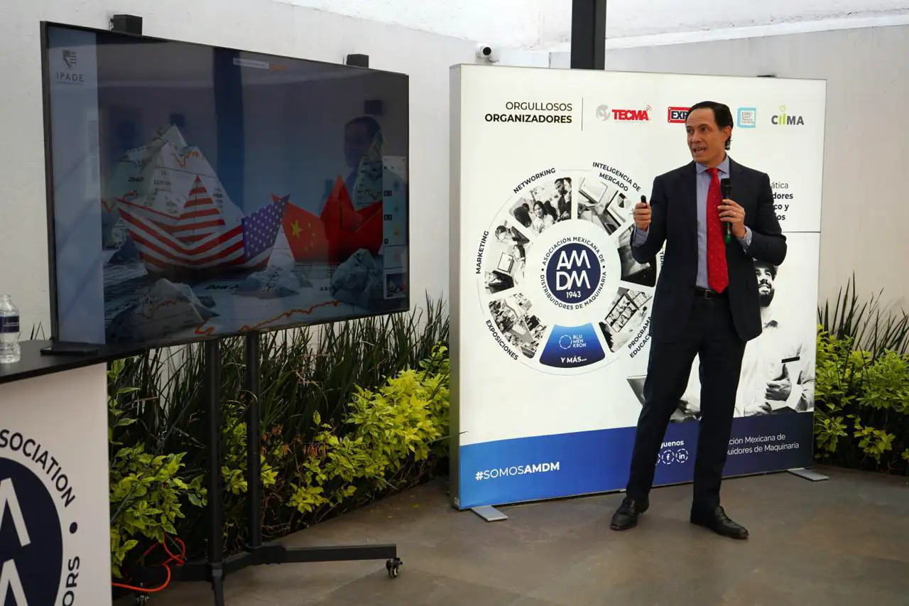 La Asociación Mexicana de Distribuidores de Maquinaria (AMDM) llevó a cabo la Máster Talk “Descifrando la incertidumbre en el orden económico global” impartida por Rafael Ramírez de Alba, profesor y director del área de Entorno Económico en el IPADE Business School y Consultor en sistemas económicos y tecnológicos. La sesión se dividió en dos apartados, la primera enfocada en el entorno económico global y la segunda centrada en la economía nacional.