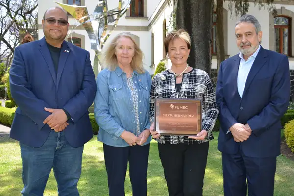 Silvia Hernández, presidente de la Junta de Gobierno de FUMEC recibió un reconocimiento por su liderazgo.