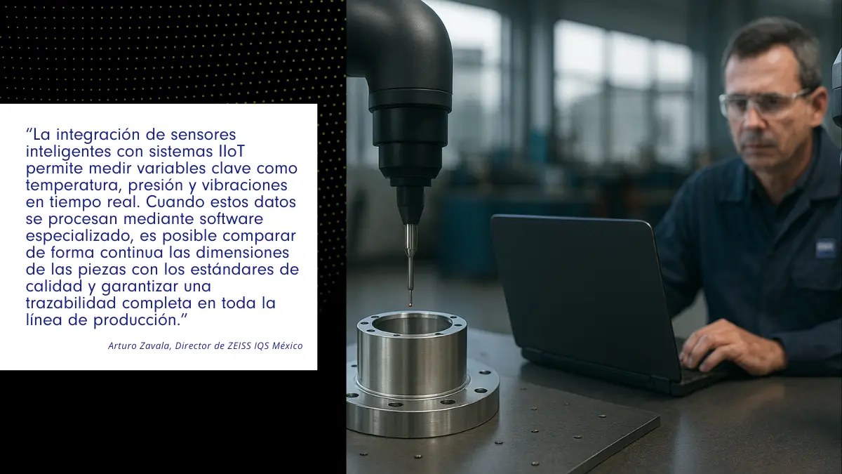 “La integración de sensores inteligentes con sistemas IIoT permite medir variables clave como temperatura, presión y vibraciones en tiempo real. Cuando estos datos se procesan mediante software especializado, es posible comparar de forma continua las dimensiones de las piezas con los estándares de calidad y garantizar una trazabilidad completa en toda la línea de producción”, explica Arturo Zavala, director de ZEISS IQS México.